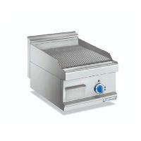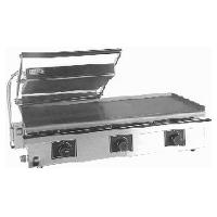 Plancha Grill con Cubierta. Construcci贸n en acero inoxidable. Placa inferior mixta lisa y acanalada y superior acanalada de hierro fundido, cubierta con capa antiadherente.