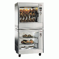 Asador de Pollos con Sistema Basculante (superior) combinado con Vitrina Calefactora (inferior). Fabricados en acero inoxidable 18/10. El茅ctrico. Con luz interior. Diferentes capacidades y dimensiones. |
