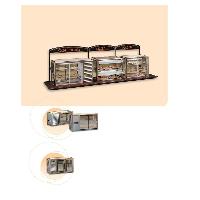 Versi贸n Snack, con 1 parrilla por puerta, o Versi贸n GN, con 1 parrilla GN y 2 juegos de gu铆as por puerta.